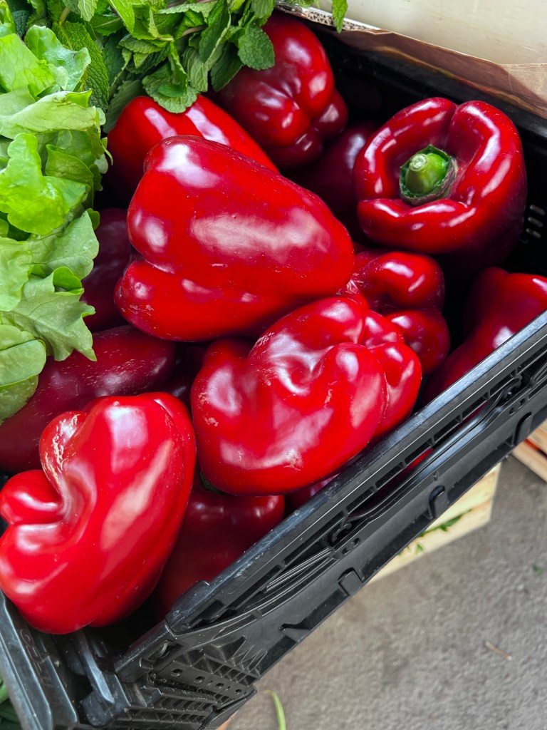 It was Saturday and a farmer’s market was taking place by the port. They were selling meats, vegetables, and cheese. A lot of locals were out and about shopping. I never saw such huge peppers.