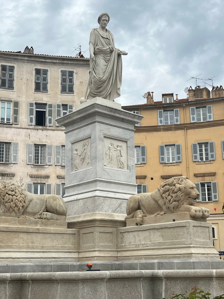 In the square was a beautiful statue of Napoleon. It is a fountain but not in operation.