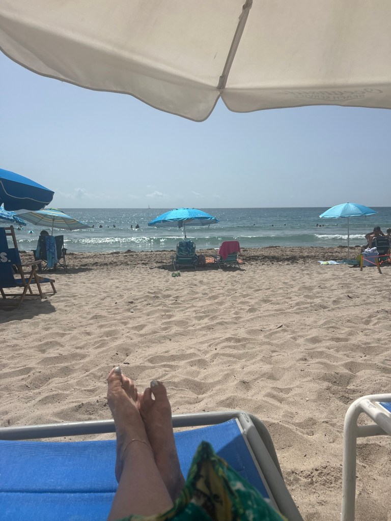 Today I’m sitting on Delray Beach. We have a senior parking permit that lets us park on A1A and the beach lots. For one year it costs $101.25.