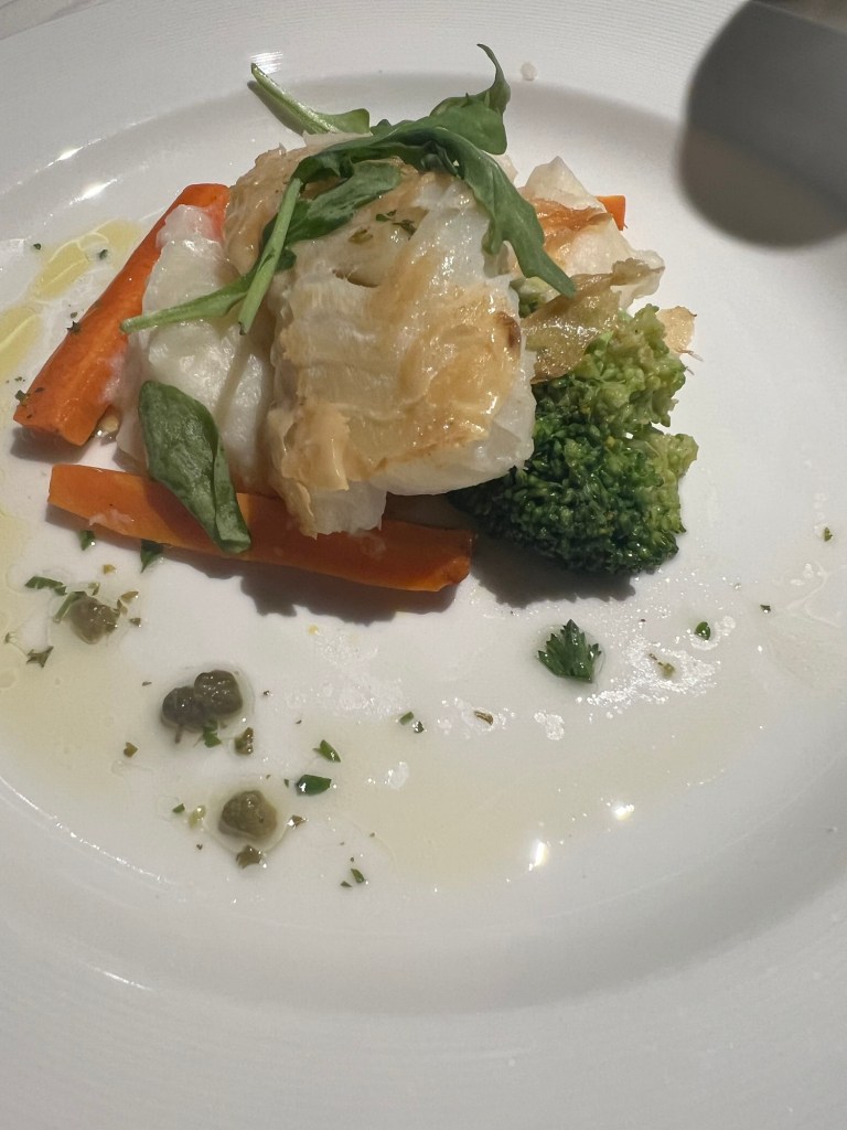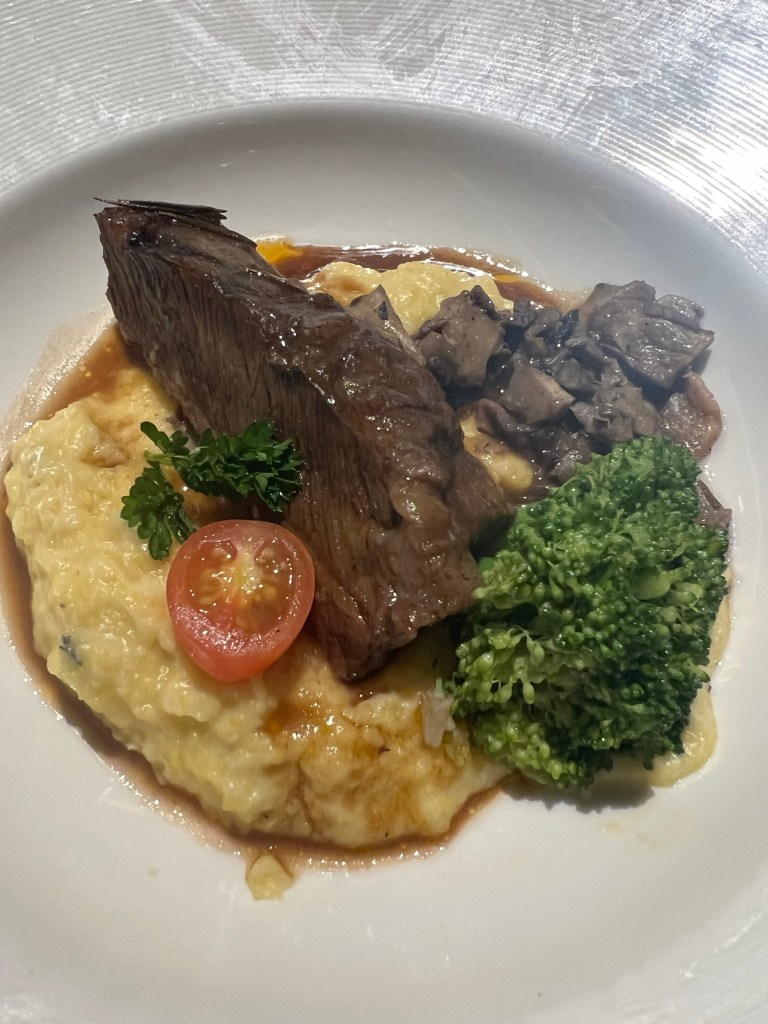 I had beef rib and Bruce had cod. Unfortunately, Princess does not serve escargot every night.