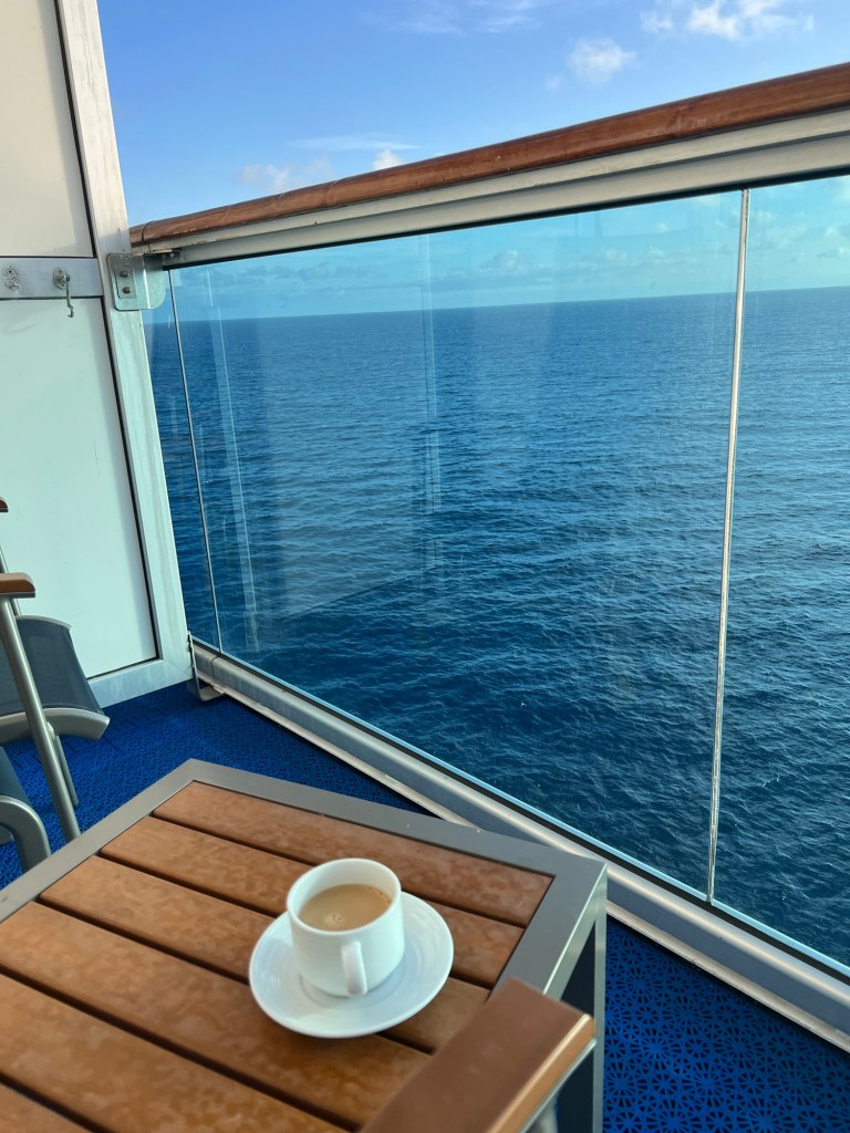 I didnβt expect to use our balcony but we had a lovely morning outside. Princess provides nice robes.