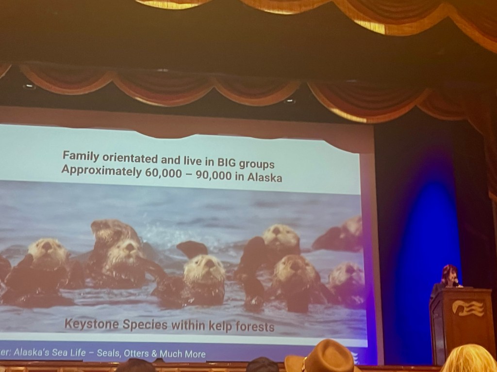 One thing Princess Cruise Line does well is hiring a naturalist or expert to present to the passengers. We learned about sea creatures such as orcas, seals, and otters, and how they survive in Alaska.
