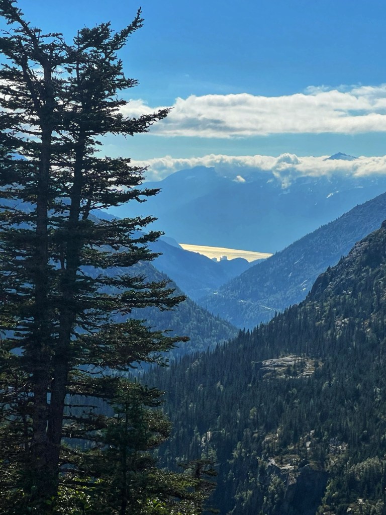 The fog lifted early in the day so our trip was spectacular. When we arrived back at our cabin the view was totally different from this morning.