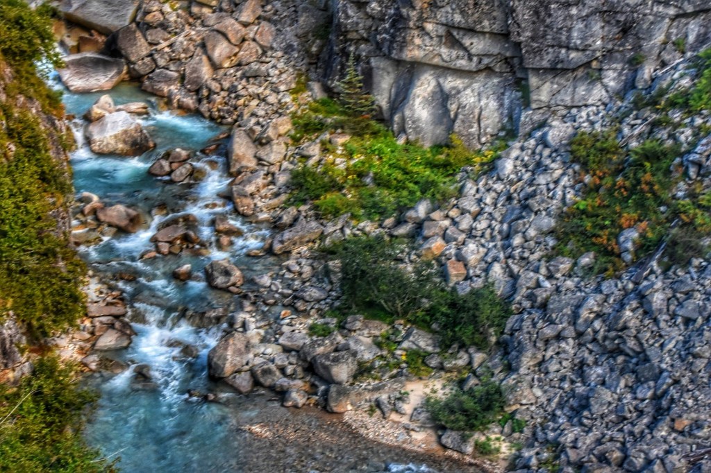 When we reached White Pass Summit there was a building with the US and Canada flags along with state flags. This is the border between the US and Canada where we did our turnaround to head back to Skagway.