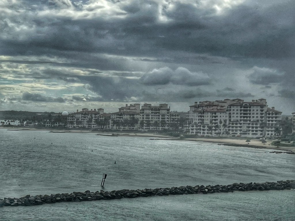 We watched as the ship left the Port of Miami. It was raining.