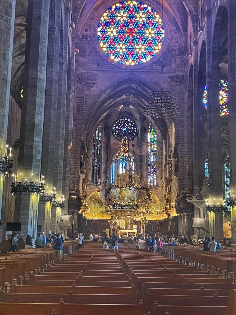 I bought skip-the-line tickets for the Cathedral of Mallorca but our conundrum was how to get there. Do we take the shuttle for $16 each, the bus for $3, or a taxi for $15? I think we thought too long and ended up walking the 2.5 miles.