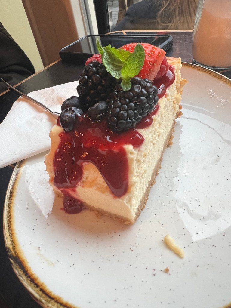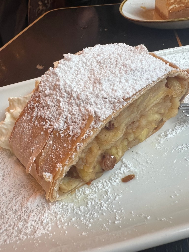 Now it was time to have our afternoon dessert. I had apple strudel and Bruce had cheesecake.