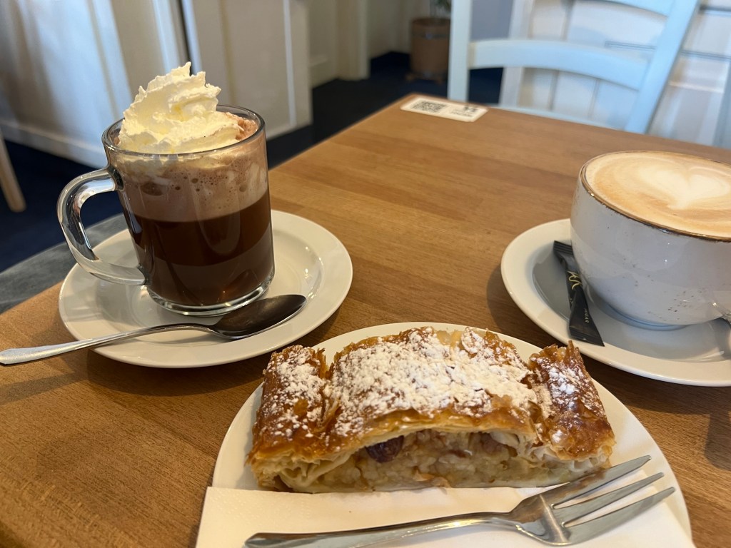 We stopped for coffee and hot cocoa. And another apple strudel.