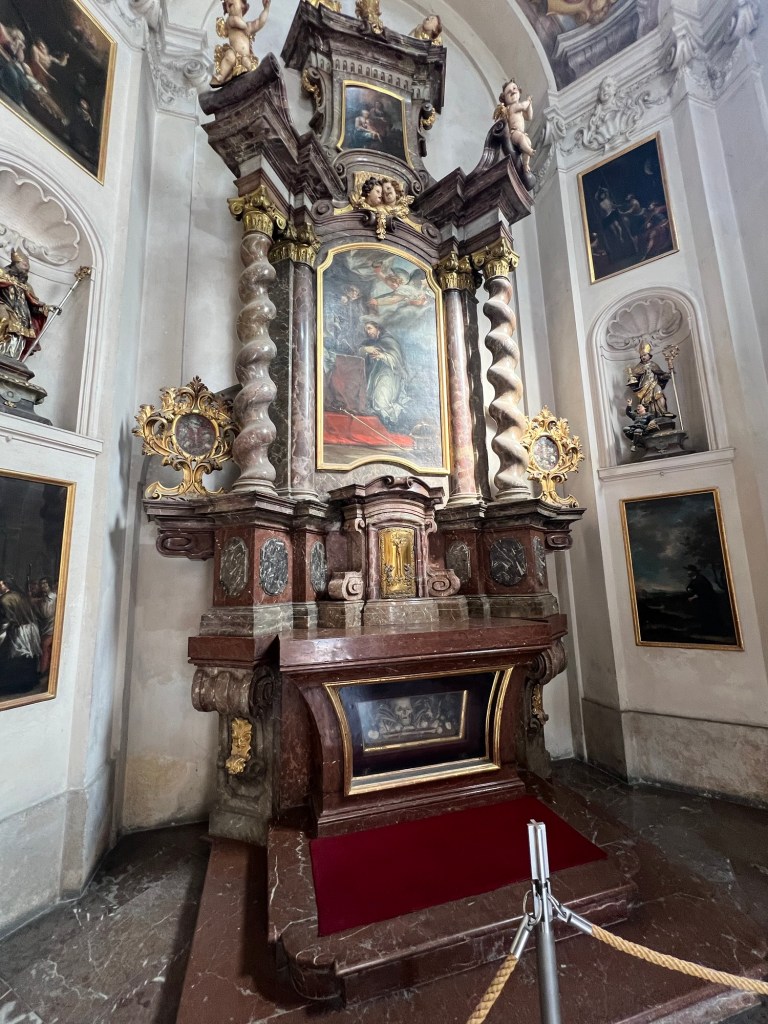 The St. Vitus Cathedral appeared to be under renovation. The seating areas were all roped off so we just walked around it. After seeing so many churches and cathedrals in Vienna this was disappointing. However the outside was beautiful.