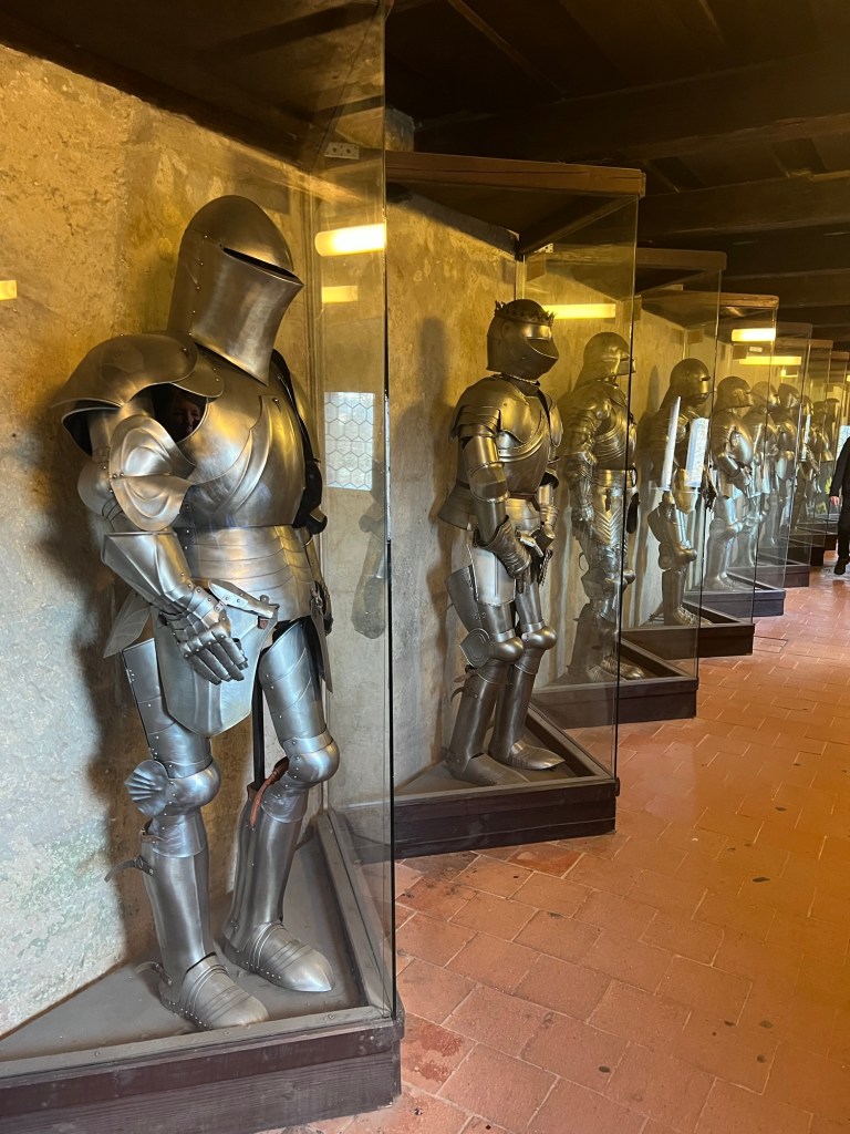 Our final stop was called Golden Lane. This was built in the 16th century now consisting of colorful buildings housing mini museums and shops. They had a display of suits of armor from the 14th and 15th centuries.