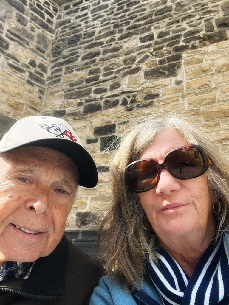 Bruce and I are resting for a moment in the square.