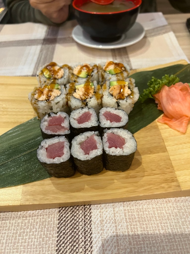 For dinner, we ate sushi. It was very good.
