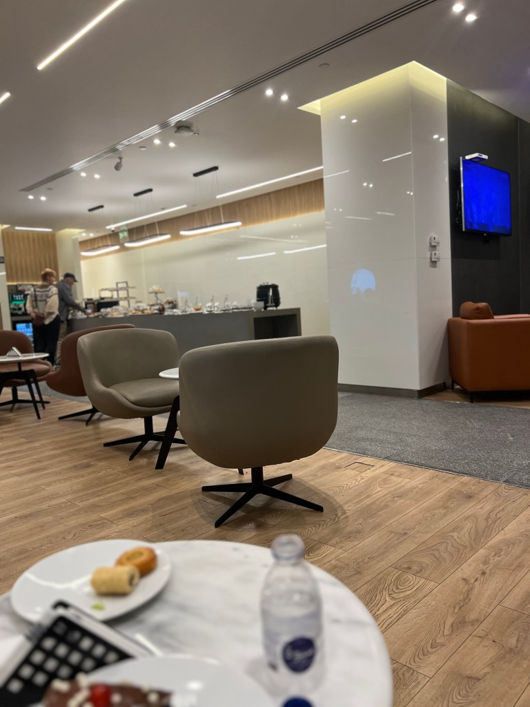 We visited an Aspire lounge but it was uncomfortable and also far from our gate. We left and went to a Swiss Air Lounge which was lovely. It also had a view of the mountains.