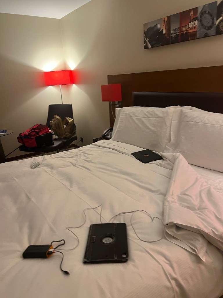 We spent the night at the Hampton Inn near LaGuardia Airport. There was a free shuttle to the airport. Now we are relaxing in a Centurion Lounge.
