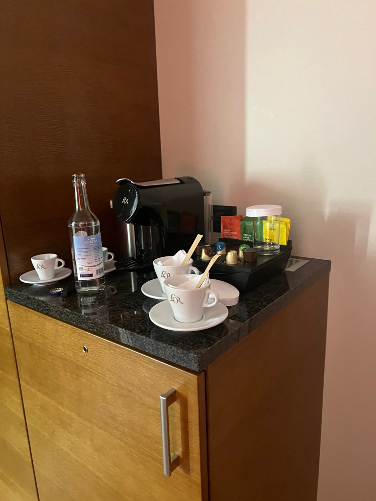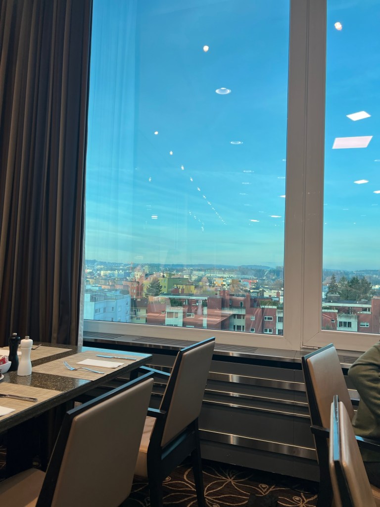 We arrived in Zurich at 10pm and caught a prepaid shuttle to The Hilton Zurich Airport. We had an upgraded room but it was still small compared to US standards.