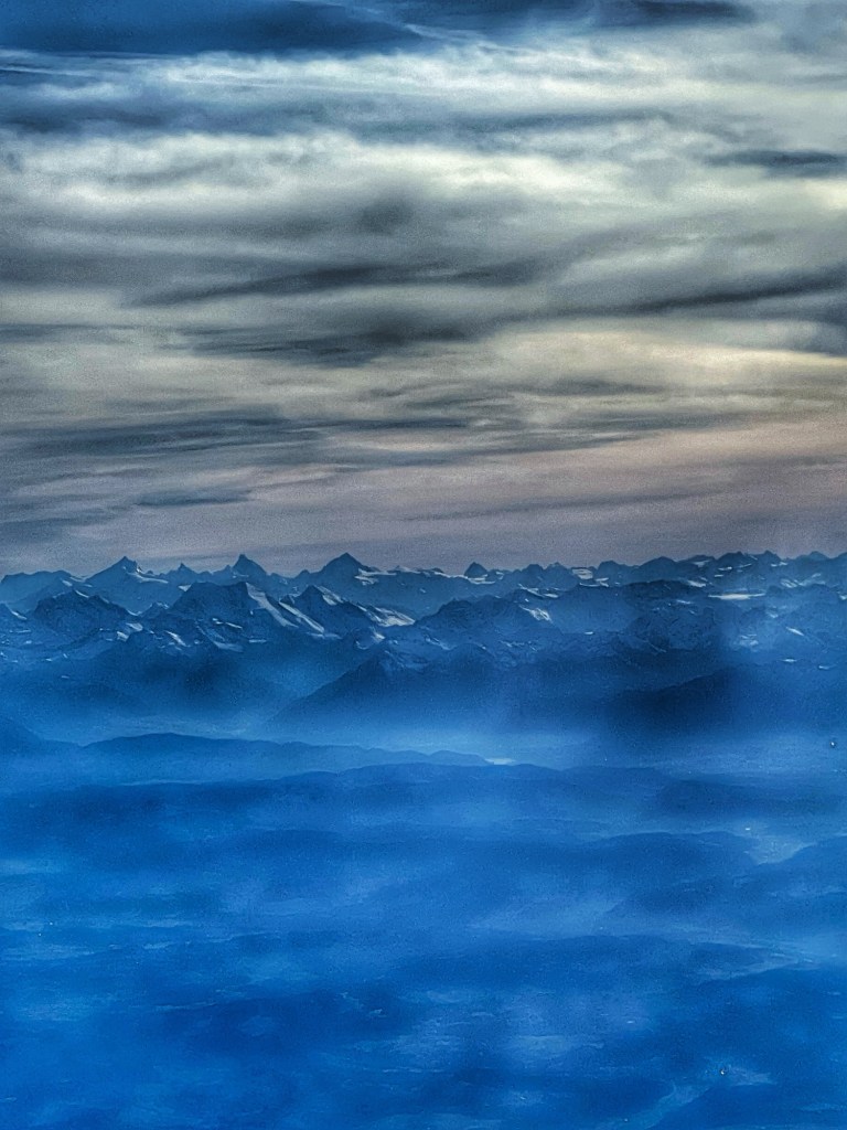 I could see the snow capped mountains as we flew over Switzerland.