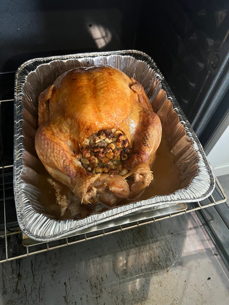I make a sausage stuffing with apples that I put in the bird right before it goes in the oven.