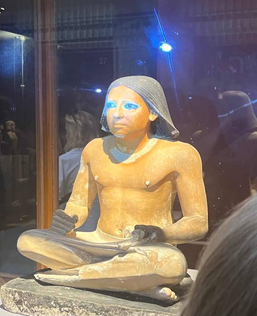 The Cairo scribe is carved and painted. It was discovered in 1893 and depicts the person who recorded and preserved the history and stories about Egypt’s culture.