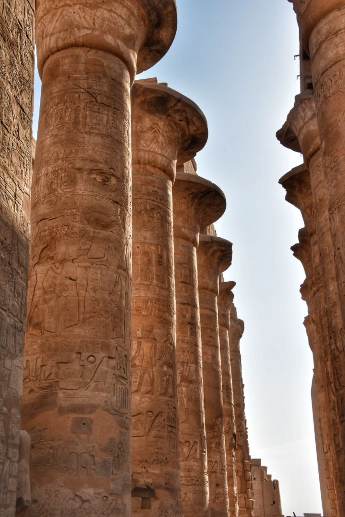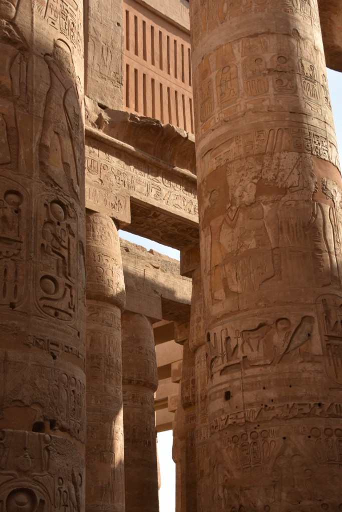 Obelisks, pylons, and columns each containing carvings telling stories from ancient Egyptian history, stood tall through the complex.