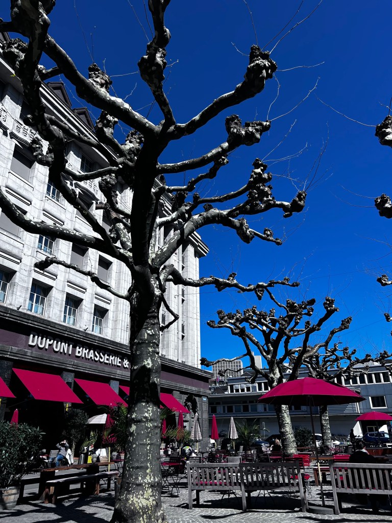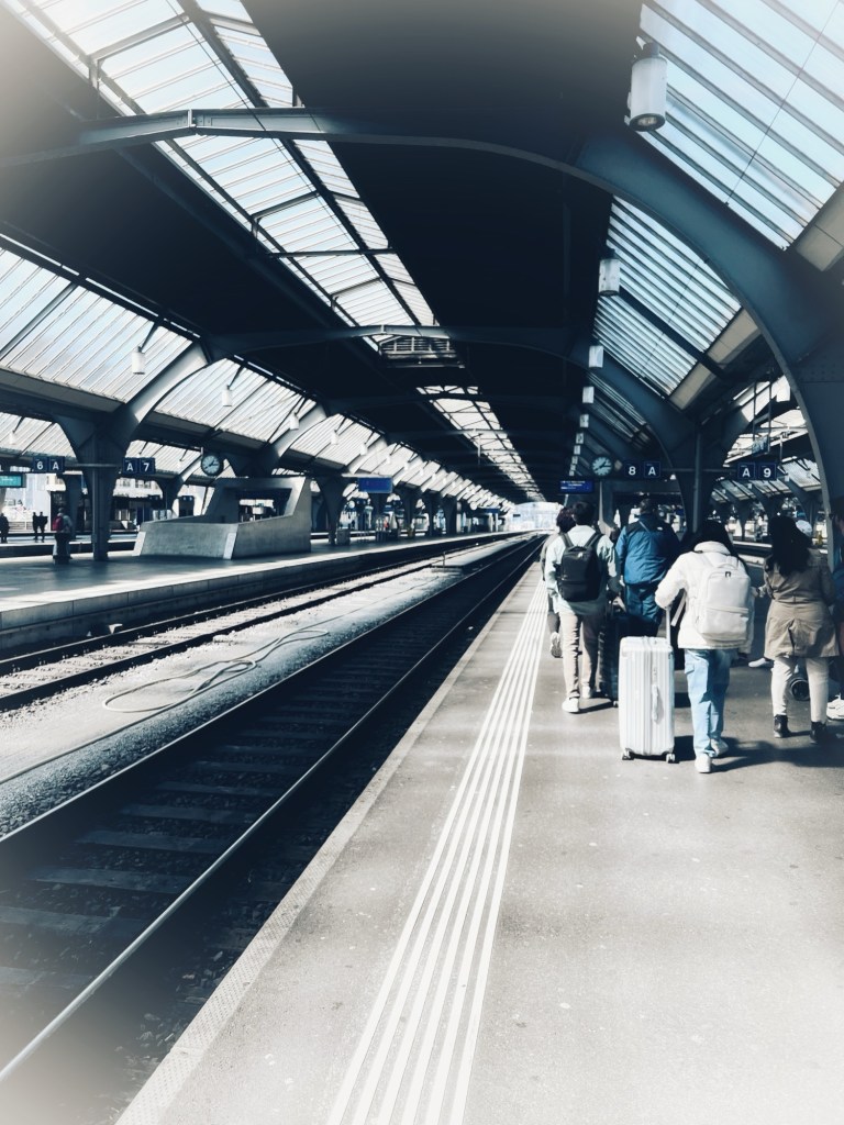 The Zurich HB train station was directly across the street from the Hotel Schweitzehof Zurich. We woke late because checkout wasn’t until noon, and our train was at 1:33 p.m.