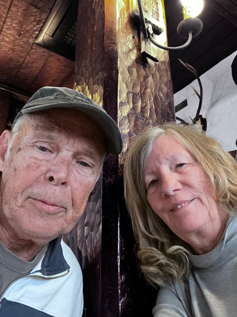 We ate pastries at a cafe in the train depot. I had almond croissant and Bruce had a custard pastry.