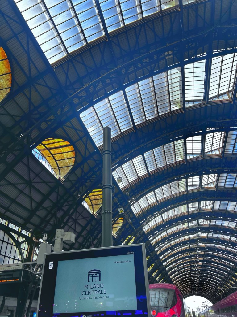 The train made several stops before we had to change in Milan.